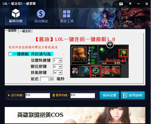 lol一键摸眼连招助手是一款专业的lol一键跳眼工具。非常的强大,让你可以跟得上王者般的手速。欢迎来此下载。