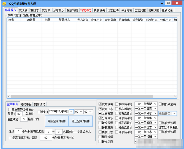 QQ空间批量发布大师是一款非常不错的QQ空间工具。可以批量转发日志说说、批量评论、批量分享得到。有需要的可以来此下载。