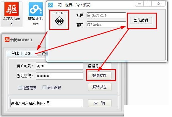 1、将【Fuck】图标拖到辅助界面上,点击【繁华破解】;