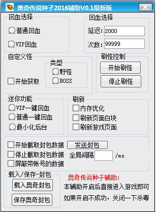 奥奇传说种子辅助是一款可以免费为玩家提供普通回血、VIP回血、自定义怪、刷怪控制等等功能的奥奇传说辅助器。欢迎来此下载。