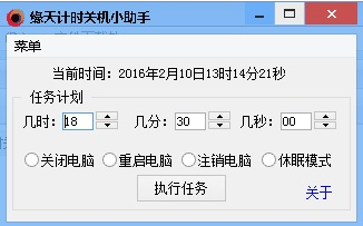 缘天计时关机小助手是一款非常不错的定时关机软件。能够智能设置时间,自动关机,欢迎下载。