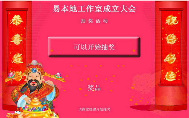 简单抽奖程序是一款可自定义抽奖显示标题,副标题,抽奖开始按钮等等的抽奖软件!功能强大,欢迎下载。