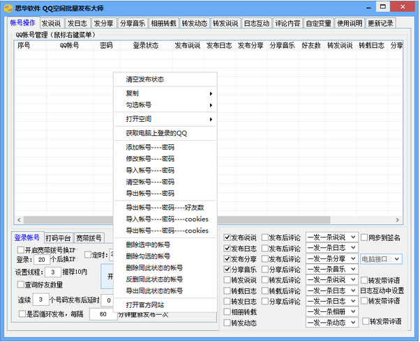 思华QQ空间批量发布大师是一款可以一键轻松批量发表、转发的软件工具。有需要的可以来天空下载使用!
