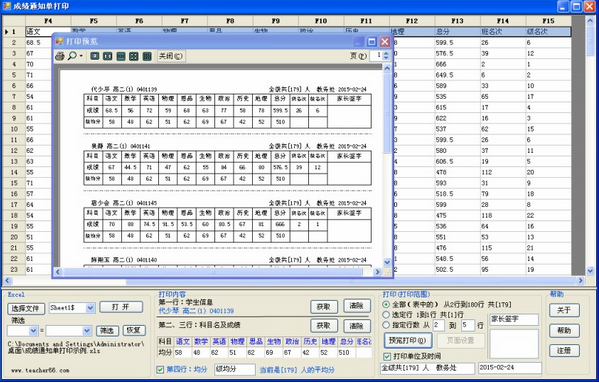 5、可打印科目成绩、总分、名次,还可打印各科成绩及总分的级平均分或班平均分。