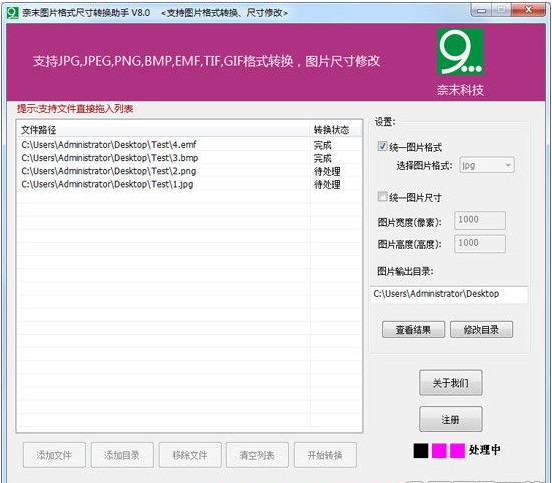 奈末图片格式尺寸转换助手是一款功能强大、便捷实用的图片格式尺寸转换器,软件方便简单,支持JPG,JPEG,PNG,BMP,EMF,TIF,GIF等图片格式间相互转换。