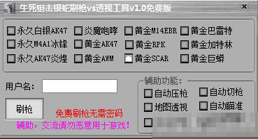 生死狙击银蛇刷枪vs透视工具是一款既可以刷枪又可以拥有透视等等功能的辅助工具,相当强大,欢迎下载。