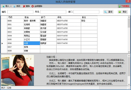2. 抽奖名单支持一键导入照片,一键批量生成编号,一键导入XLS模板,抽奖结果打印和导出,初始数据的建立——简单、方便,懒人巧做事轻松完成。