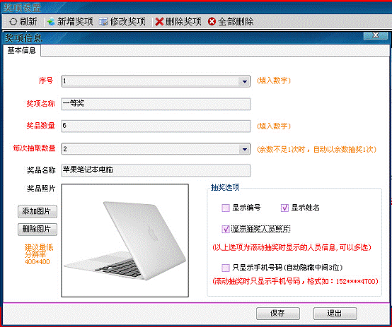 6. 支持临时追加奖项和奖品数量,支持临时补奖和弃奖功能,对各种应急要求应付自如。