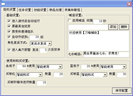 10.【保护】自动并智能喝红、蓝药进行保护。根据当前角色等级,自动判断该等级所需用药品,也可自行设定。