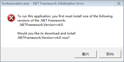 解决方案:开票软件安装程序会出现没有自动安装microsoft.net framework4.0,安装好开票后,进入时会有图示错误,需手动装microsoft.net framework4.0。
