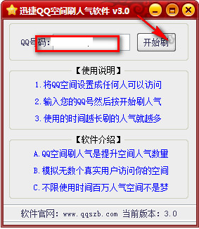 2、其次下载并运行软件,输入QQ号然后按开始刷人气.