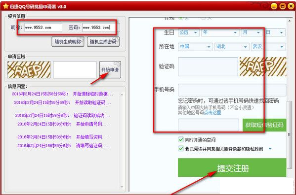 1.下载并运行软件,输入昵称和密码,输入验证码,点击开始申请.