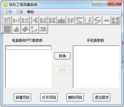 轻松工程测量系统5.0电脑版可用于公路、中桩、边桩、高程放样坐标计算、遂道超挖、欠挖测量计算,可编辑线路参数、计算单个点坐标、批量计算坐标、坐标反算桩号偏距、计算单个点高程、结构物角点坐标计算,坐标正反算、绘制横断面坐标转换、绘制隧道断面、批量计算市政断面高程。