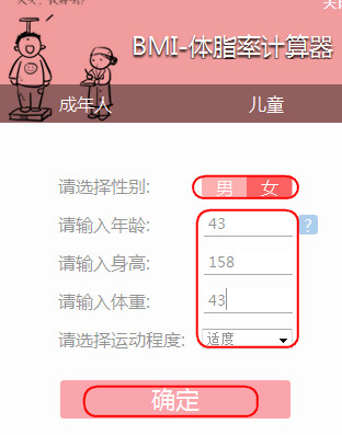选择你的性别然后输入你想测试的数据,点击确定就可以看到你想看的的结果啦