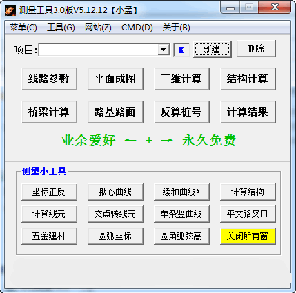 小孟测量工具是一款可以帮助你计算三维计算、线路参数、路基路面等等的建筑计算软件。可以很多程度的减少人工计算造成的误差。欢迎下载。