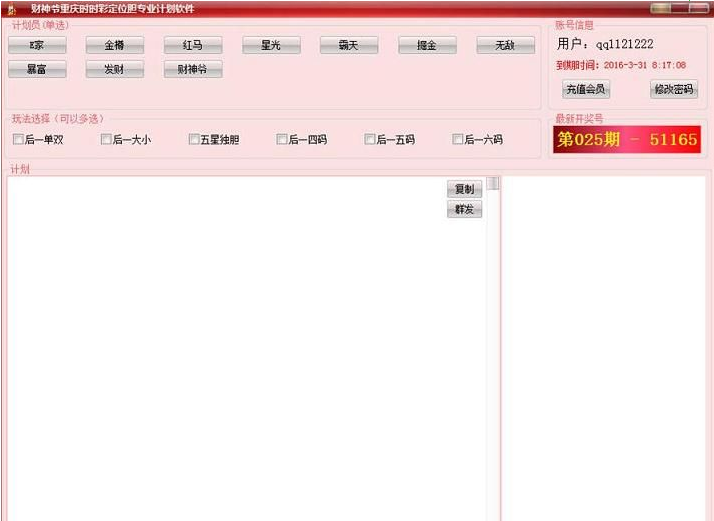 计划软件适合会自己不会做号分析重庆时时彩数据、不会做号的客户,更合适需要群发计划的用户。