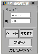 LOL高级炸房辅助是一款非常不错的英雄联盟上分神器。让敌人都掉线,上分就是那么轻松!有需要的额可以来天空下载使用!