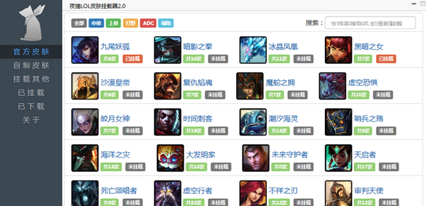 夜猫LOL皮肤挂载器是一款内置众多lol官方皮肤用户可以轻松一键修改,也可以挂载自己制作英雄皮肤的工具。有需要的就可以来此 下载使用!