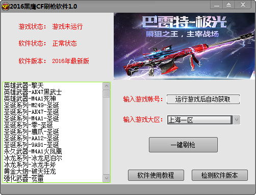 2、输入游戏账号(运行游戏后自动获取),并输入游戏大区,选择要刷的枪械.