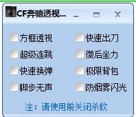 CF奔驰透视辅助算是穿越火线系列辅助中的元老级别人物了。功能也是比较的强大,透视功能让你可以轻松击杀敌人。欢迎下载!