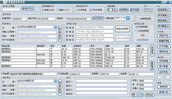 2、支持自动金额汇总,大小写自动转换,自动生成密码区等