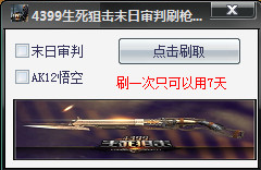 4399生死狙击末日审判刷枪永存版是一款可以帮助玩家刷取末日审判、AK12悟空枪支的工具。有需要的可以来天空下载使用!