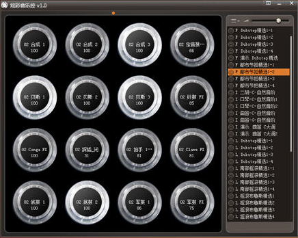 界面中的圆形按钮图标与硬件炫彩音乐控上的按钮实时互动高亮显示。 特聘专业音乐人不断更新各种风格的音色包,总有一款您喜欢。