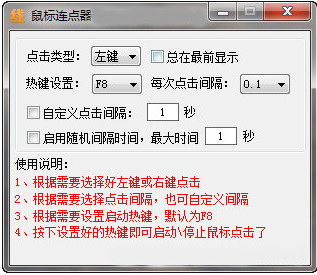 点击间隔可选择使用软件自带的间隔时间也可自定义设置