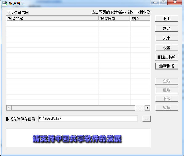 棋谱快车可以帮您轻松下载棋圣道场、新浪围棋、搜狐、清风、弈城、中国围棋网、中国大学生围棋网、飞扬围棋网等知名网站的在线棋谱和所有围棋网站的SGF棋谱。