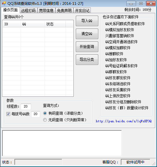 (1)软件可查询QQ号冻结的各类情况;