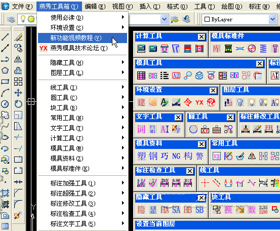 燕秀工具箱2016为最新版的一款工具箱,该工具箱支持简体、繁体、英文的AutoCAD2004、2005、2006、2007、2008、2009 、2010、2011、2012、2016等。本程序与众多类似外挂不同,主要注重应用功能的增强。