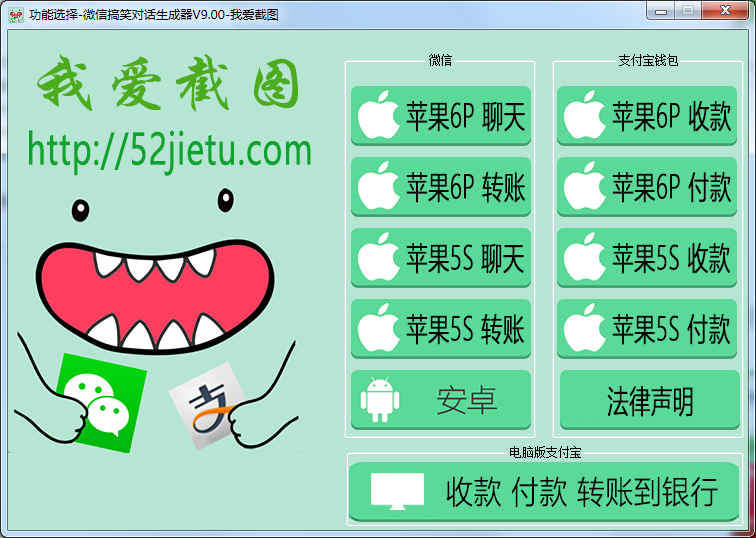我爱截图微信搞笑对话生成器是一款非常不错的微信对话生成器。装逼必备,能够快速生成微信聊天记录和支付宝记录。有需要的可以来此下载!