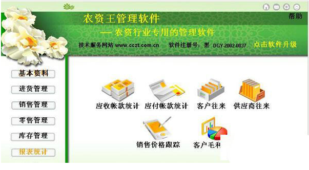 农资王管理软件是一款农资行业专用的管理软件。本软件可以实现基本的进销存和往来账管理,支持基本资料、进货管理、销售管理、零售管理、库存管理、报表统计等功能,极大的方便了农资行业管理。