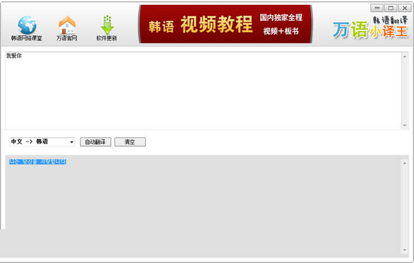 万语韩语翻译器是万语小译王推出的一款免费的韩语翻译软件,非常的方便实用,能够轻松的将韩语翻译成中文,或将中文翻译成韩文。软件即下即用,无需安装,纯绿色版。