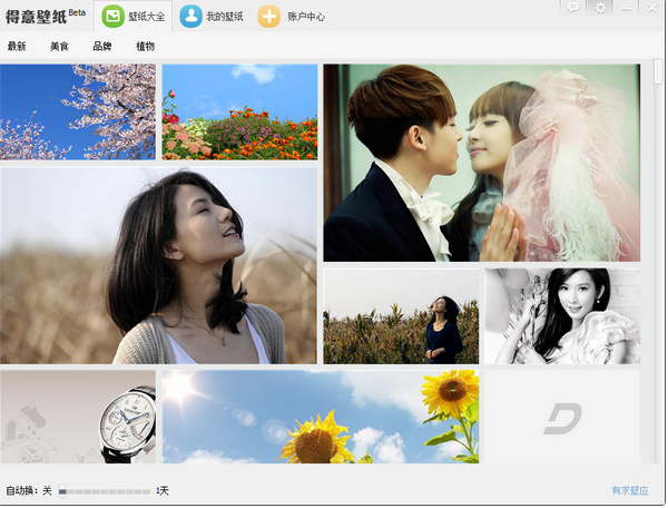 得意壁纸是一款非常好用的电脑壁纸软件。拥有海量最新的美食、明星、风景等壁纸,还支持自动换壁纸。有需要的可以来此下载!