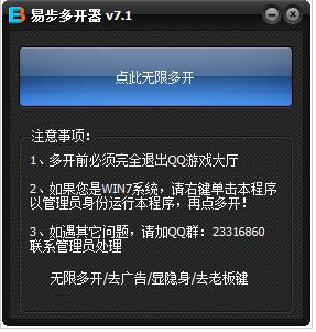 易步多开器是一款可以帮助QQ游戏大厅玩家多开客户端,支持在同一台电脑上多开qq游戏大厅的工具。功能强大,欢迎下载!
