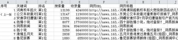 查询完以后导出的结果数据部分截图