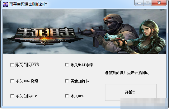 新雨幕生死狙击刷枪软件是一款非常不错的生死狙击刷枪辅助。可以刷取黄金加特林、AK47炎煌、M4A1冰封等等枪支,欢迎下载!