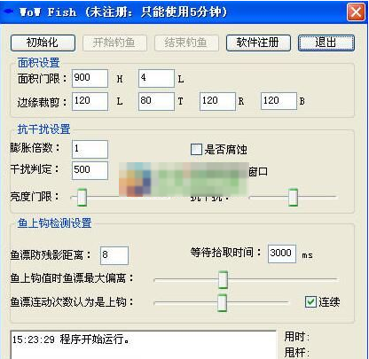 备注:本程序自动钓鱼原理是检测鱼漂,副本等无光照的区域效果最佳,否则可能连续几小时候系统判断鱼漂的设置需要对应修改(否则识别率将严重下降)。建议如果是在野外光照影响较大时,人物尽量背光进行钓鱼。