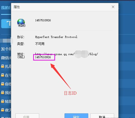 日志和说说ID,只需要查看你的日志URL地址后缀的一串文字即可发现,不懂的可以看下图
