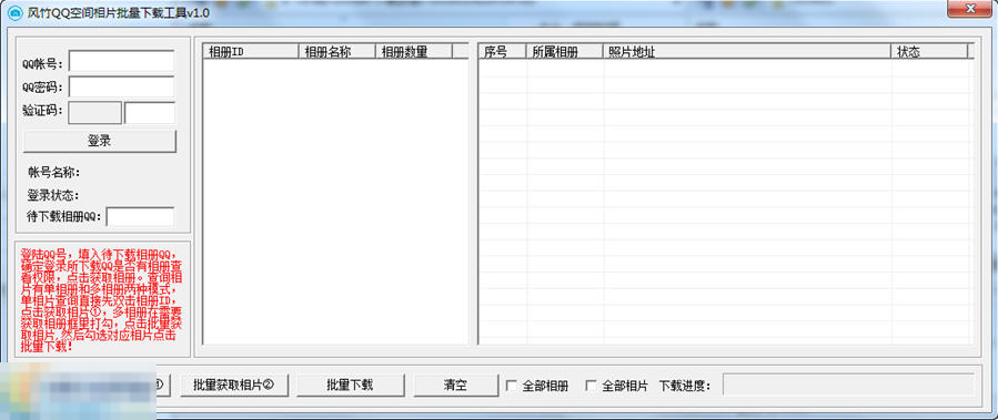 风竹QQ空间相片批量下载工具是一款非常不错的空间相册下载软件。功能完善,使用方便。有需要的可以来天空下载使用!