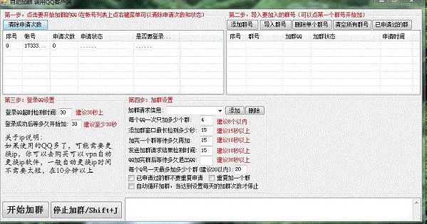 当你点击开始加群按钮,软件会自动开始加群,不需要你手动去做。下面讲下软件加群的正确过程,以便于在异常时可以判断在哪一步出错: