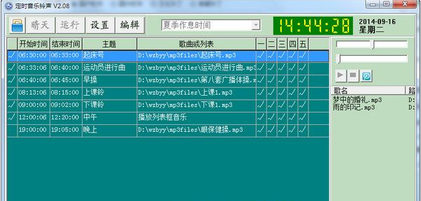 1、本软件适合学校、厂矿、超市、广场等定时打铃和定时播放音乐。