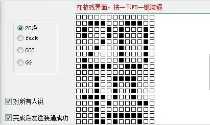 3、游戏界面,选择要刷屏的文字,有20投,fuck,666,gg,按一下F5一键装逼。