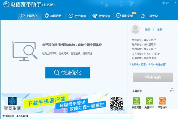 电信宽带助手集合用户需求开除了工具箱供用户使用。下载一探究竟吧!(家庭网管、免费wifi开启)等等