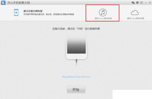 第一步:打开开心手机恢复大师,点击【通过iTunes备份恢复】。