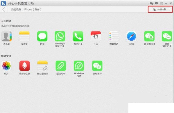 开心手机恢复大师是一款相当给力的苹果手机数据恢复软件。支持从iTunes备份以及从iCloud账户恢复可用数据。支持从iOS设备直接恢复误删数据,有需要的可以来天空下载使用!