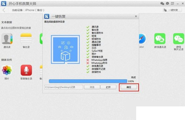 第六步:恢复完成,点击【确定】离开界面。(“X”数据表示该数据类型下无数据)。