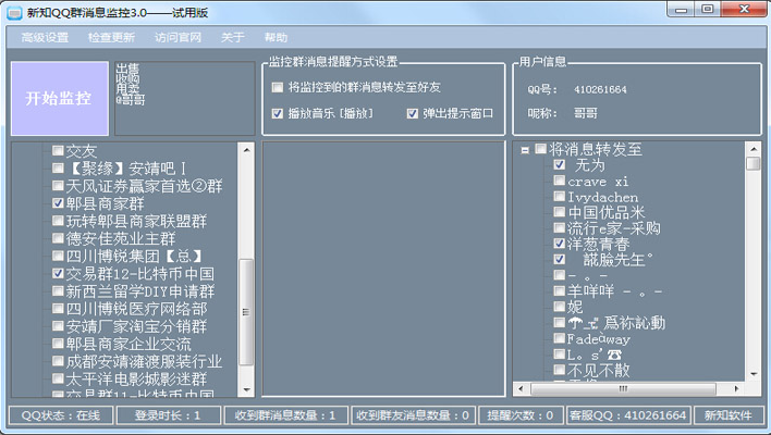 1.新知QQ群消息监控能接收所有来自QQ群里的消息;
