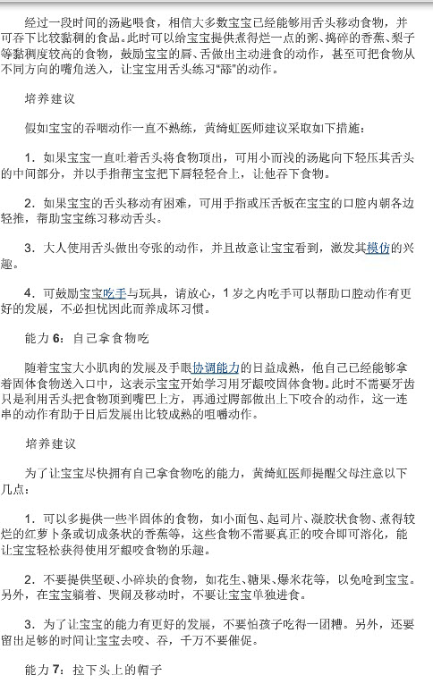 宝宝的口腔肌肉越来越灵活,加上牙齿的咀嚼能力日益提升,能吃的食物种类越来越丰富,对于均衡摄取各种营养大有帮助。需要注意的是,要随时提醒宝宝养成细嚼慢咽的习惯。